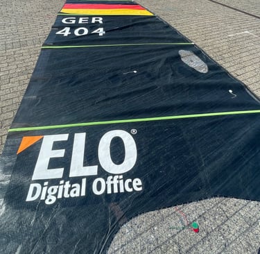Der erste Wettkampftag begann stürmisch, sodass wir erst am Nachmittag starten konnten. Doch das Pech ließ nicht lange auf sich warten: Kaum hatten wir den Race Kurs erreicht und uns fertig eingesegelt, rutschten die Segellatten aus dem Segel. Unsere Versuche, die Latten auf dem Wasser wieder einzubauen, scheiterten. Schweren Herzens mussten wir abbrechen und die ersten drei Rennen des Tages verpassen.