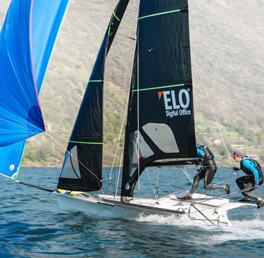 Der 29er PM / 49er & i14 Spring Cup, der sonst am Lago Maggiore in Ascona ausgetragen wird (und den wir 2022 gewinnen konnten), fand dieses Jahr aufgrund einer Kooperation des Yachtclubs Ascona mit der Segelschule Marvelia erstmals in Dongo am Comer See statt.